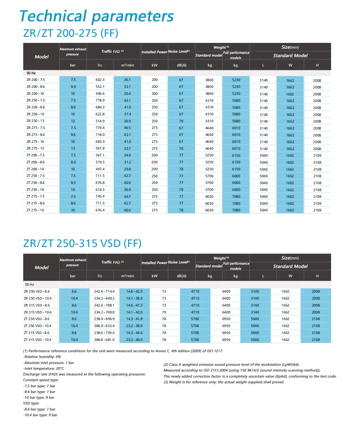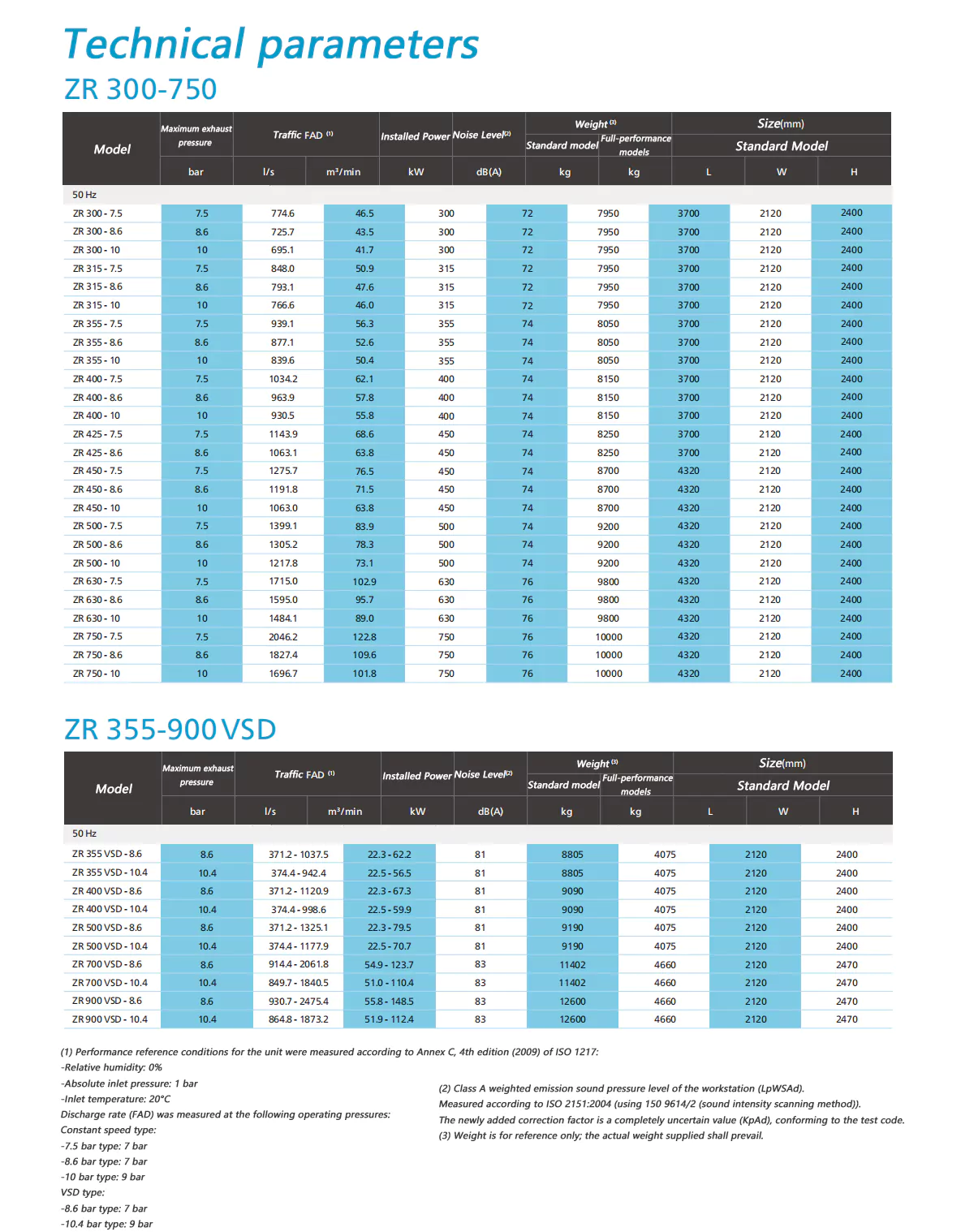 முதிர்ந்த Z எண்ணெய் இல்லாத திருகு தொழில்நுட்பம், ZR நீர்-குளிரூட்டப்பட்ட மாதிரிகள்