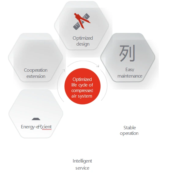இங்கர்சால் ராண்ட் உங்கள் வசதிக்காக அழுத்தப்பட்ட காற்றை மட்டும் வழங்கவில்லை. ஒரு முறையான அணுகுமுறையின் மூலம் மொத்த உரிமைச் செலவை (TCO) மேம்படுத்துகிறோம், மேலும் வடிவமைப்பு முதல் உபகரணங்கள் புதுப்பித்தல் வரை வாழ்க்கைச் சுழற்சி முழுவதும் நம்பகத்தன்மையை வழங்க அதிக அதிநவீன காற்று சுருக்க தொழில்நுட்பங்களைப் பயன்படுத்துகிறோம்.