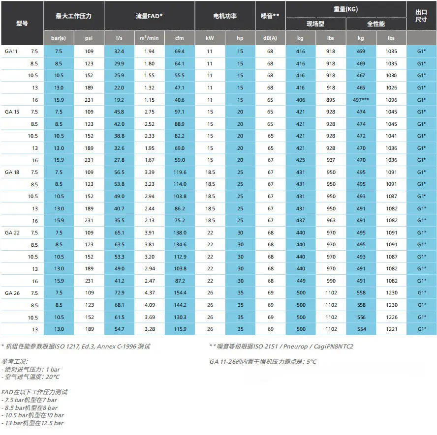 GA11-26 புதிய சுழலி மற்றும் IE2/IE3 உயர் திறன் மோட்டாரை ஏற்றுக்கொள்கிறது, இது நீடித்த மற்றும் திறமையானது.