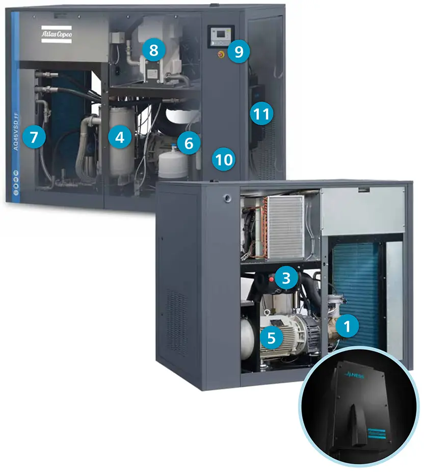 ⑨Elektronikon° வண்ணத் திரை நுண்ணறிவு கட்டுப்படுத்தி
